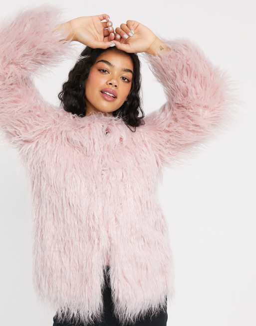 ASOS DESIGN mongolian faux fur coat in pink Very well made.