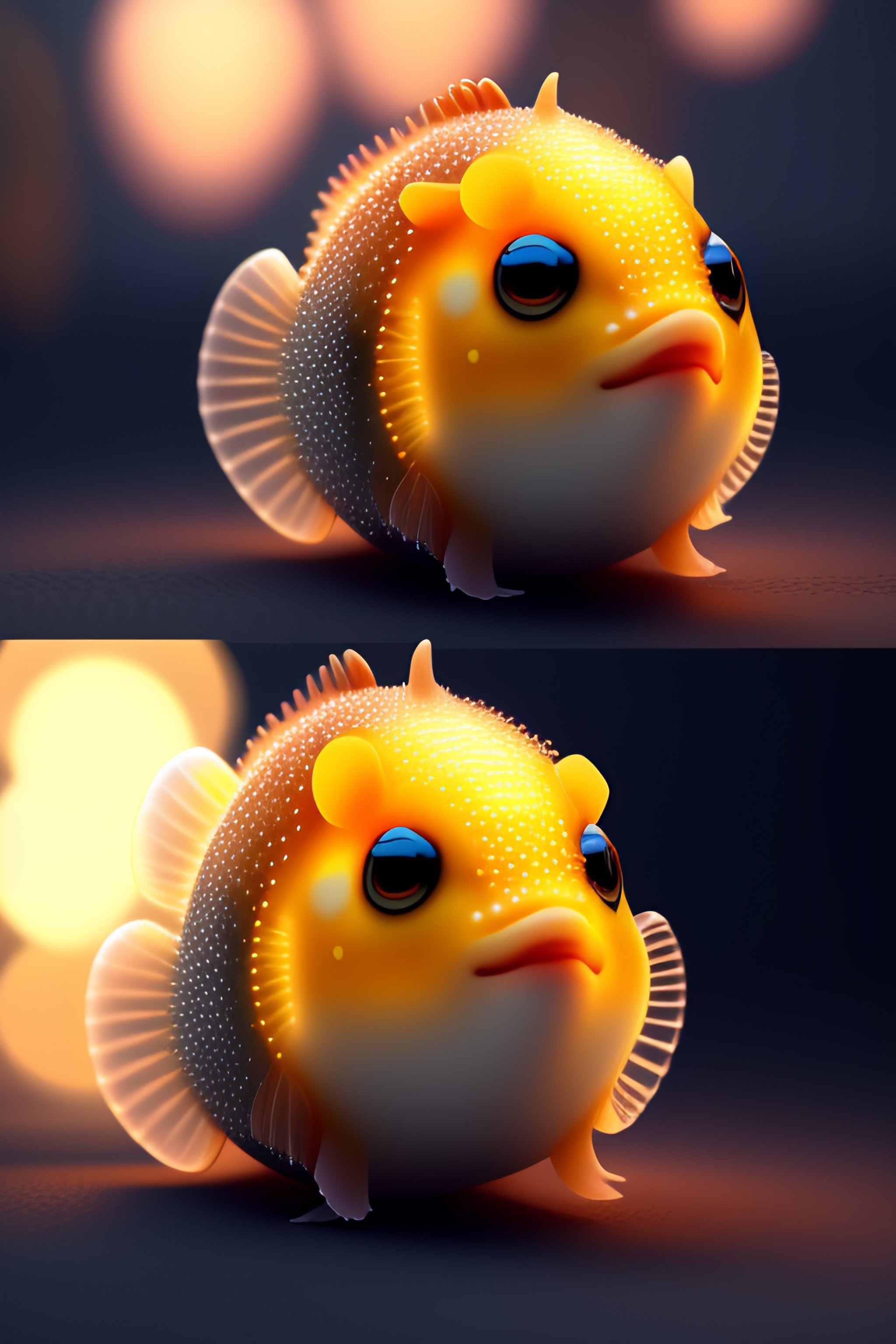Lexica A cute adorable baby puffer fish made of crystal ball Very well made.