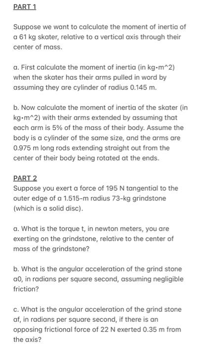 Solved PART 1 Suppose we want to calculate the moment of Chegg Very well made.