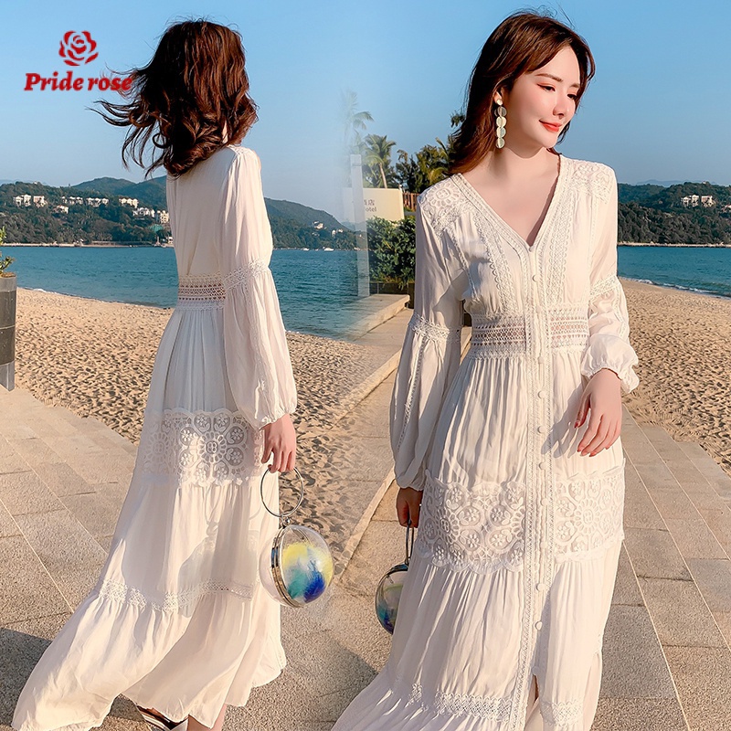 Bohemian seaside resort beach dress V neck dress was thin waist Very well made.