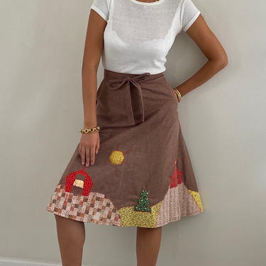 70s hand made appliqu wrap skirt vintage handmade cotton 3D Very well made.