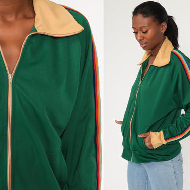70s Track Jacket Green Rainbow Striped Jacket Zip Up Zip Shop Very well made.
