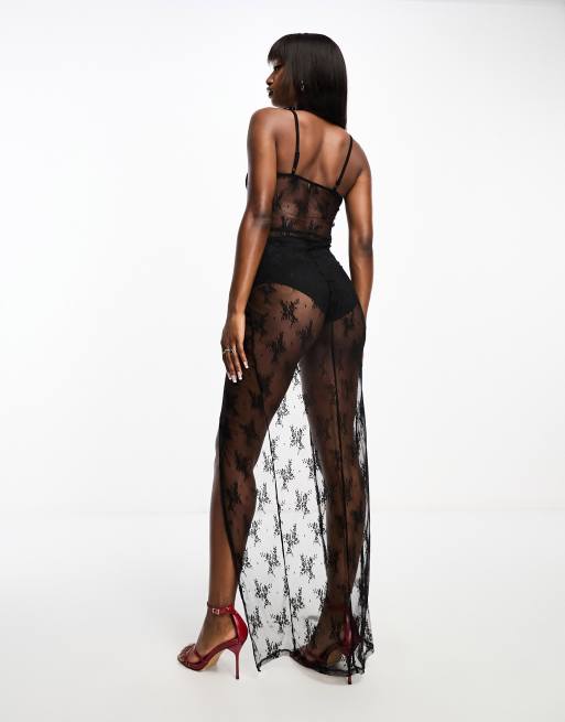 ASOS DESIGN cup detail sheer lace maxi dress in black Very well made.